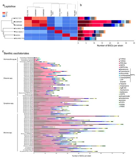 - Dittmann, E.; Gugger, M.; Sivonen, K.; Fewer, D.P. Natural Product Biosynthetic Diversity and Comparative Genomics of the Cyanobacteria. Trends Microbiol. 2015, 23, 642–652. [Google Scholar] [CrossRef] [PubMed]
