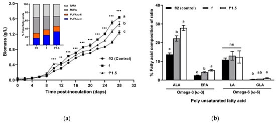 - Huang, X.; Huang, Z.; Wen, W.; Yan, J. Effects of nitrogen supplementation of the culture medium on the growth, total lipid content and fatty acid profiles of three microalgae (Tetraselmis subcordiformis, Nannochloropsis oculata and Pavlova viridis). J. Appl. Phycol. 2013, 25, 129–137. [Google Scholar] [CrossRef]
