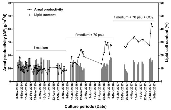 - Chiu, S.-Y.; Kao, C.-Y.; Tsai, M.-T.; Ong, S.-C.; Chen, C.-H.; Lin, C.-S. Lipid accumulation and CO2 utilization of Nannochloropsis oculata in response to CO2 aeration. Bioresour. Technol. 2009, 100, 833–838. [Google Scholar] [CrossRef] [PubMed]