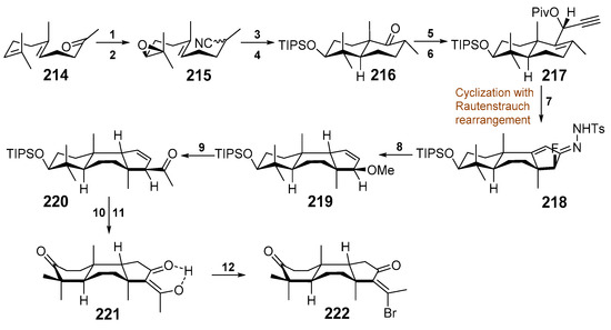 - Boyko, Y.D.; Huck, C.J.; Sarlah, D. Total synthesis of isomalabaricane triterpenoids. J. Am. Chem. Soc. 2019, 141, 14131–14135. [Google Scholar] [CrossRef]
