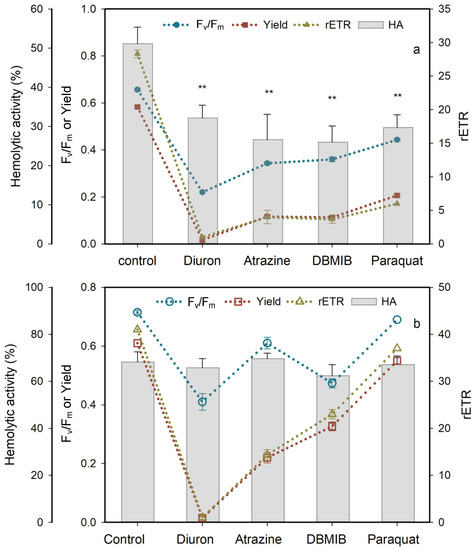 Wu N, Tong M, Gou S, Zeng W, Xu Z, Jiang T. Hemolytic Activity in Relation to the Photosynthetic System in Chattonella marina and Chattonella ovata. Marine Drugs. 2021; 19(6):336. https://doi.org/10.3390/md19060336