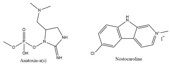 - Mahmood, N.A.; Carmichael, W.W. Anatoxin-a(s), an anticholinesterase from the cyanobacterium Anabaena flos-aquae NRC-525-17. Toxicon 1987, 25, 1221–1227. [Google Scholar] [CrossRef]