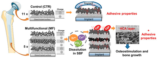 - Almeida, A.C.; Vale, A.C.; Reis, R.L.; Alves, N.M. Bioactive and adhesive properties of multilayered coatings based on catechol-functionalized chitosan/hyaluronic acid and bioactive glass nanoparticles. Int. J. Biol. Macromol. 2020, 157, 119–134. [Google Scholar] [CrossRef]