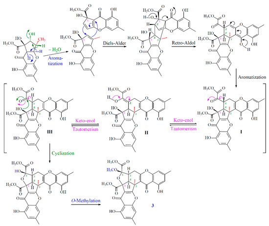 The hypothetic biosynthesis scheme of 3.