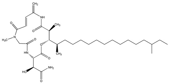RKC-B1 (Figure 1) was isolated from the marine micromonospora FIM02-523. Additionally, B1 single-component fermentation was obtained by high-yield strain breeding and optimization of fermenting. Nowadays, there were few reports on the pharmacological activity of RKC-B1 and the anti-neuroinflammation effects of RKC-B1 were unclear until now. Thus, in the present study, the anti-neuroinflammation effects and the possible underlying mechanisms of RKC-B1 in LPS-induced mice were investigated.