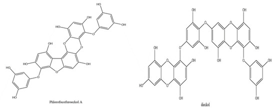 The chemical structures of phlorofucofuroeckol A and dieckol.
