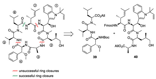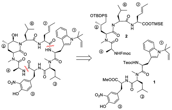 The interesting biological properties and unusual building blocks of marine cycloheptapeptides sparked the interest of synthetic chemists, and the syntheses of several different amino acids and fragments have been reported in a recent review [37]. Therefore, they will not be discussed in detail here, and the focus will be on the total syntheses of the natural products.