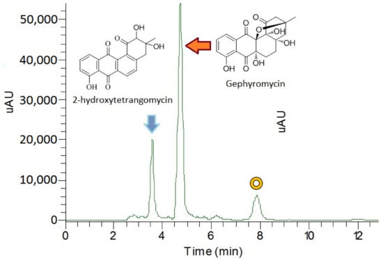- Gerhard, B.; Gerhard, L.; Kadja, M.; Andreas, H.; Tobias, A.M.G.; Anke, D.; Alan, T.B.; James, E.M.S.; Niko, K.; Werner, E.G.M. Gephyromycin, the first bridged angucyclinone, from Streptomyces griseus strain NTK 14. Phytochemistry 2005, 66, 1366–1373. [Google Scholar]