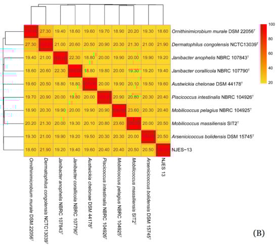 - Collins, M.D.; Routh, J.; Saraswathy, A.; Lawson, P.A.; Schumann, P.; Welinder-Olsson, C.; Falsen, E. Arsenicicoccus bolidensis gen. nov., sp. nov., a novel actinomycete isolated from contaminated lake sediment. Int. J. Syst. Evol. Microbiol. 2004, 54, 605–608. [Google Scholar] [CrossRef][Green Version]