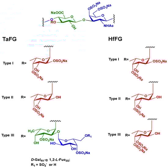 - Pomin, V.H. Holothurian Fucosylated Chondroitin Sulfate. Mar. Drugs 2014, 12, 232–254. [Google Scholar] [CrossRef]