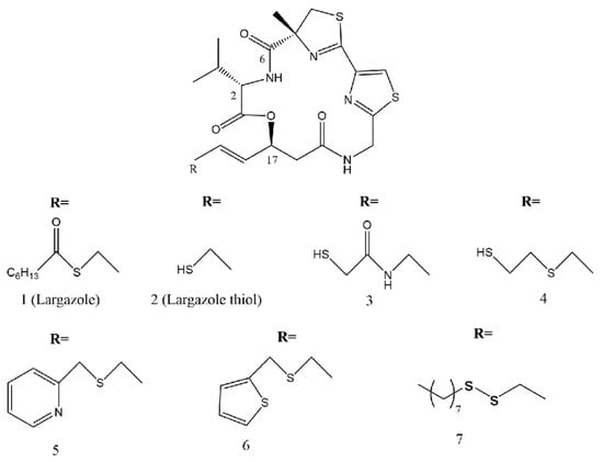 - Zeng, X.; Yin, B.; Hu, Z.; Liao, C.; Liu, J.; Li, S.; Li, Z.; Nicklaus, M.C.; Zhou, G.; Jiang, S. Total synthesis and biological evaluation of largazole and derivatives with promising selectivity for cancers cells. Org. Lett. 2010, 12, 1368–1371. [Google Scholar] [CrossRef] [PubMed]