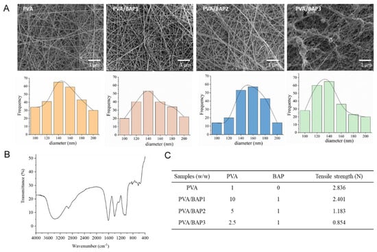 3.2. Electrospinning Fabrication of PVA/BAP Fibers