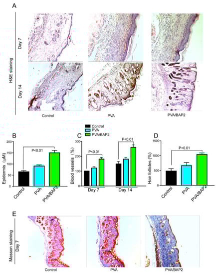 2.4. Rapid Repair of Wounds by the PVA/BAP2 Fiber