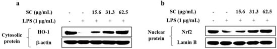 2.4. SC Mitigates LPS-Induced Inflammation via Modulating the Nrf2/HO-1 Signaling Pathway