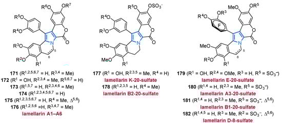 - Bailly, C. Lamellarins: A Tribe of Bioactive Marine Natural Products. In Outstanding Marine Molecules; La Barre, S., Kornprobst, J.-M., Eds.; Wiley-VCH: Weinheim, Germany, 2014; pp. 377–386. [Google Scholar]