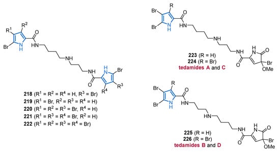 Synthetically known pyrrole-2-carboxamides 42–47, isolated for the first time from marine origin.
