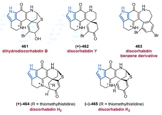 - Hu, J.-F.; Fan, H.; Xiong, J.; Wu, S.-B. Discorhabdins and Pyrroloiminoquinone-Related Alkaloids. Chem. Rev. 2011, 111, 5465–5491. [Google Scholar] [CrossRef]