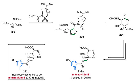- Birman, V.B.; Jiang, X.-T. Synthesis of Sceptrin Alkaloids. Org. Lett. 2004, 6, 2369–2371. [Google Scholar] [CrossRef] [PubMed]
