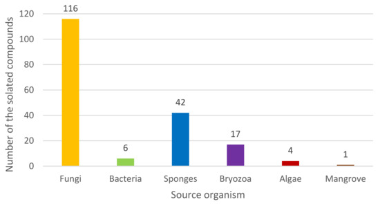 Distribution of the marine-derived indole alkaloids isolated from source organisms from January 2016 to October 2021.