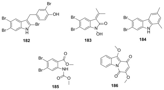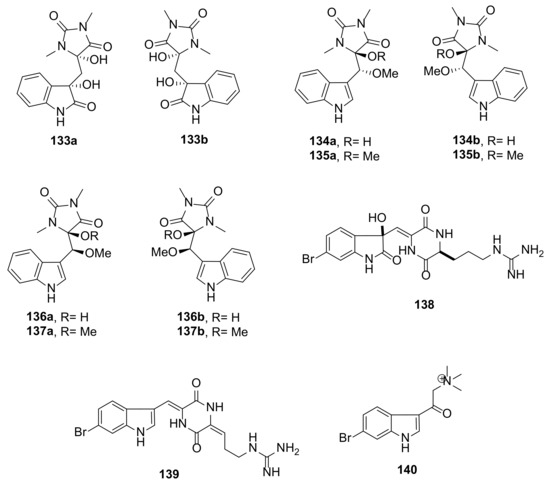 Marine sponges are also a source of structurally diverse indoles. However, only simple indoles and bis-/tris-indoles were reported from marine sponges in this period.