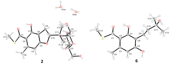 X-ray diffractions of compounds 2 and 6.