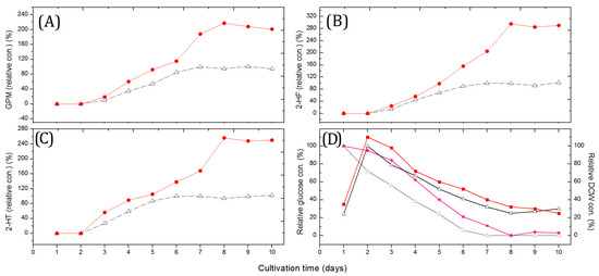 3.6. Glucose and Dry Cell Weight Concentration Measurements