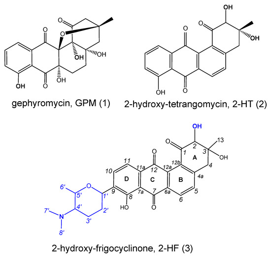 - Kern, D.L.; Schaumberg, J.P.; Hokanson, G.C.; French, J.C. PD 116,779, a new antitumor antibiotic of the benz[a]anthraquinone class. J. Antibiot. 1986, 39, 469–470. [Google Scholar] [CrossRef][Green Version]