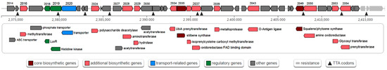 - Blin, K.; Shaw, S.; Kloosterman, A.M.; Charlop-Powers, Z.; van Wezel, G.P.; Medema, M.H.; Weber, T. AntiSMASH 6.0: Improving cluster detection and comparison capabilities. Nucleic Acids Res. 2021, 12, gkab335. [Google Scholar] [CrossRef]