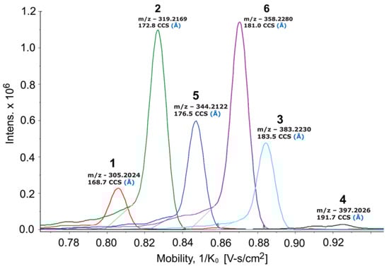 UV spectra were recorded on an Aminco/OLIS UV-Vis spectrophotometer. IR spectra were measured with a Bruker Equinox 55/S FT–IR spectrophotometer. NMR spectra were obtained in CD3OD (δH 3.34 ppm, δC 49.0 ppm) with a Bruker Avance 600 III MHz (Billerica, MA, USA) spectrometer equipped with a 1H{13C/15N/31P} cryoprobe, a Bruker Avance III 500 MHz (Billerica, MA, USA) spectrometer equipped with a 13C/15N{1H} cryoprobe, and a Bruker Avance III HD 400 MHz (Billerica, MA, USA) spectrometer. HRMS data were acquired with a Bruker MaXis™ 4G ESI-QTOF (Billerica, MA, USA) mass spectrometer. RP HPLC was performed using a Shimadzu Prominence HPLC system and a Phenomenex Gemini C18 column (250 × 30 mm). UHPLC-HRMS was acquired using a Bruker MaXis™ 4G ESI-QTOF (Billerica, MA, USA) mass spectrometer coupled with a Waters Acquity UPLC system operated by Bruker Hystar software and a C18 column (Phenomenex Kinetex 2.6 μm, 2.1 mm × 100 mm). Bruker timsTOF Pro instrument (Billerica, MA, USA) was used for the trapped ion mobility MS analysis using direct infusion with 0.003 mL/min of flow rate and ESI+ ionization source. Nebulizer gas 0.4 bar, dry gas 3.5 L/min, source temperature 220 °C, ESI voltage 4200V (+). MS spectra were collected using the following parameters: tims ramp time = 350 ms, PASEF on, scan range (m/z, 20–1000; 1/k0, 0.70–1.00 V·s/cm2.