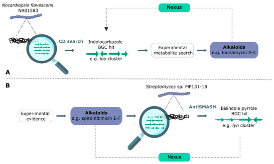 While Actinobacteria have been the subject of many functional screens or extraction analyses, plenty of interesting secondary metabolites are still found when studying them. However, the discovery of novel compounds over known metabolites is not straightforward. The following section contains a thorough review of the wet-lab workflows used to find the new alkaloids discussed in this review. A detailed overview of the applied strategies is provided in Supplementary Table S2.