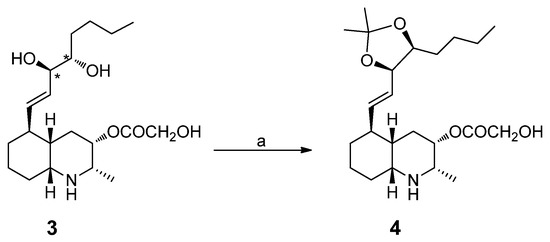 Conversion of lepadin L (3) into corresponding acetonide 4. Reagents and conditions. (a) 2,2-dimethoxypropane, Dowex 50W-X8, rt, 2 h.