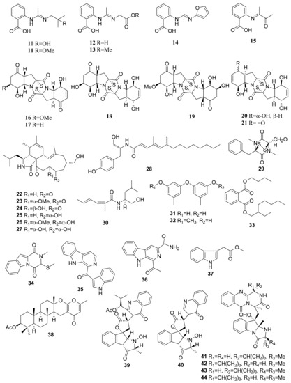 - Welch, T.R.; Williams, R.M. Epidithiodioxopiperazines. occurrence, synthesis and biogenesis. Nat. Prod. Rep. 2014, 31, 1376–1404. [Google Scholar] [CrossRef]