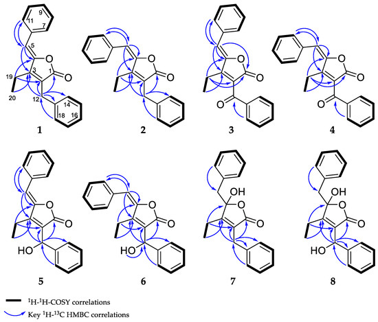 4.5. Structure Elucidation of 1–8 by NMR Spectroscopy