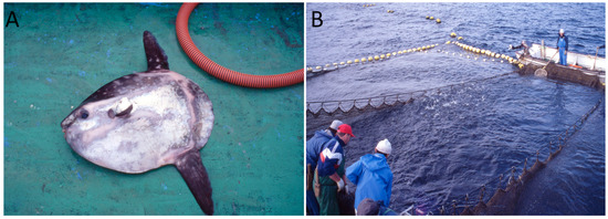 - Baptista, M.; Couto, A.; Paula, J.R.; Raimundo, J.; Queiroz, N.; Rosa, R. Seasonal variations in the abundance and body size distribution of the ocean sunfish Mola mola in coastal waters off southern Portugal. J. Mar. Biol. Assoc. U. K. 2019, 99, 1197–1203. [Google Scholar] [CrossRef]