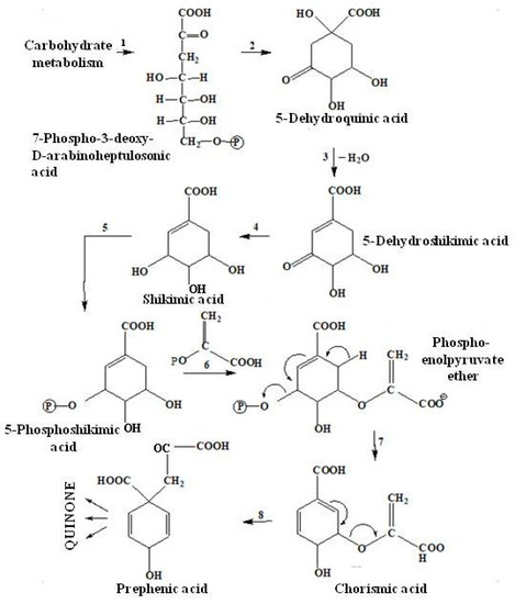 Diagram of the shikimate pathway of quinone biosynthesis [42].