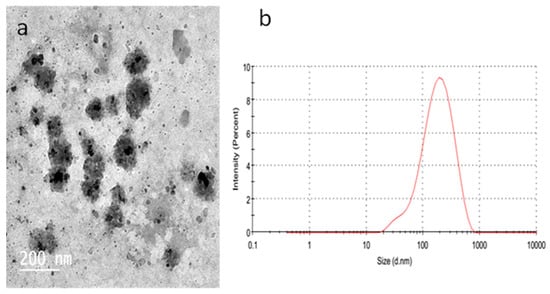 (a) TEM of Hyrtios-containing niosomes. (b) Size distribution of Hyrtios-containing niosomes.