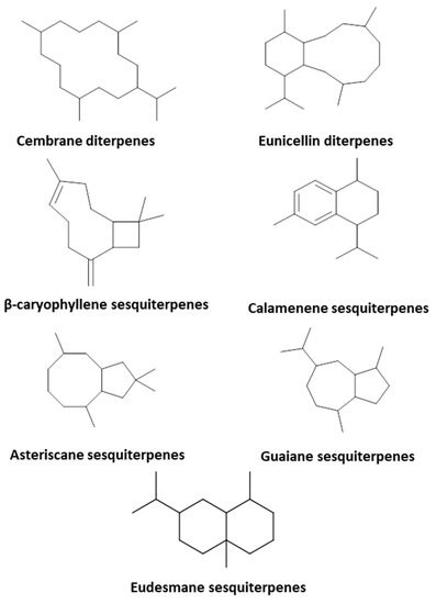 - Gross, H.; König, G.M. Terpenoids from marine organisms: Unique structures and their pharmacological potential. Phytochem. Rev. 2006, 5, 115–141. [Google Scholar] [CrossRef]