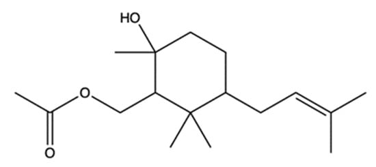 - Naine, S.J.; Devi, C.S.; Mohanasrinivasan, V.; Doss, C.G.P.; Kumar, D.T. Binding and Molecular Dynamic Studies of Sesquiterpenes (2R-Acetoxymethyl-1,3,3-Trimethyl-4t-(3-Methyl-2-Buten-1-Yl)-1t-Cyclohexanol) Derived from Marine Streptomyces sp. VITJS8 as Potential Anticancer Agent. Appl. Microbiol. Biotechnol. 2016, 100, 2869–2882. [Google Scholar] [CrossRef]