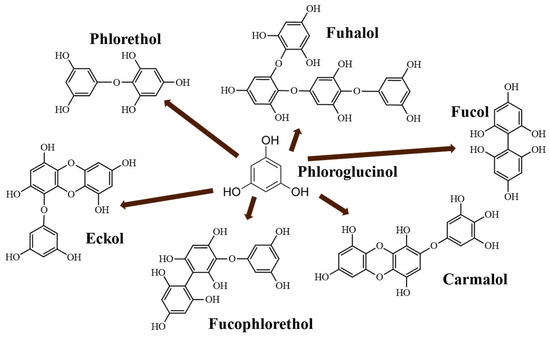 Phlorotannin main structures derived from phloroglucinol polyketide pathway reaction (adapted from Ford et al. [2]).