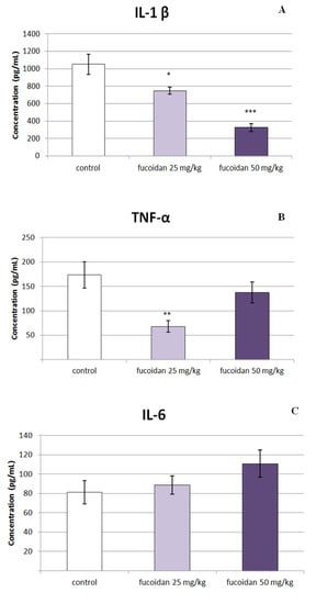2.5. Effect of Fucoidan on Histamine-Induced Paw Edema in Rats
