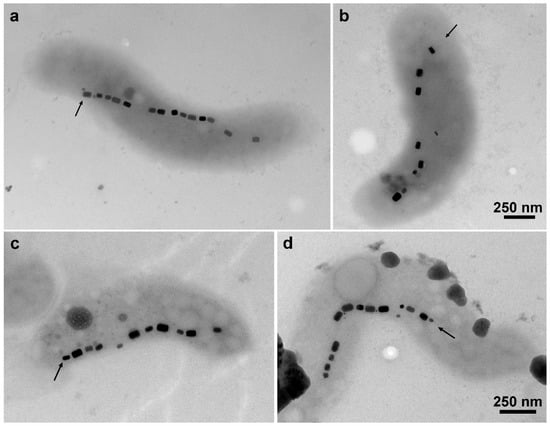- Bazylinski, D.A.; Williams, T.J.; Lefèvre, C.T.; Trubitsyn, D.; Fang, J.; Beveridge, T.J.; Moskowitz, B.M.; Ward, B.; Schübbe, S.; Dubbels, B.L.; et al. Magnetovibrio blakemorei Gen. Nov., Sp. Nov., a Magnetotactic Bacterium (Alphaproteobacteria: Rhodospirillaceae) Isolated from a Salt Marsh. Int. J. Syst. Evol. Microbiol. 2013, 63, 1824–1833. [Google Scholar] [CrossRef]