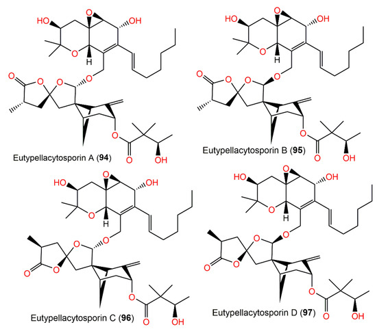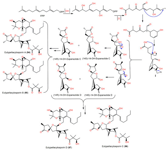 Biosynthetic pathway of eutypellacytosporins A–D (94–97) [].