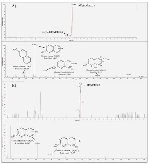 - Bane, V.; Brosnan, B.; Barnes, P.; Lehane, M.; Furey, A. High-resolution mass spectrometry analysis of tetrodotoxin (TTX) and its analogues in puffer fish and shellfish. Food Addit. Contam. Part A Chem. Anal. Control Expo. Risk Assess. 2016, 33, 1468–1489. [Google Scholar] [CrossRef]