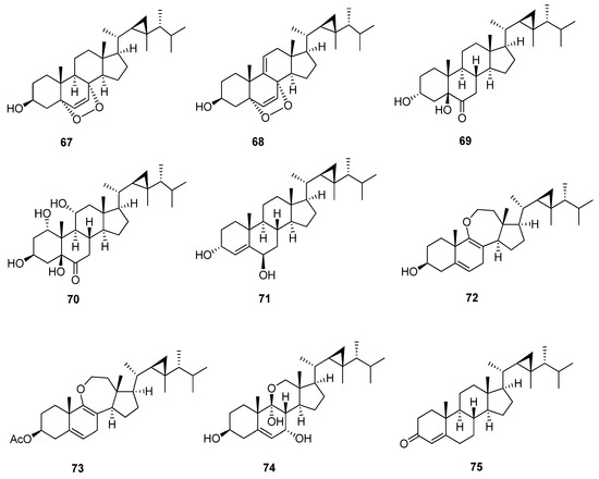 Structures of isolated miscellaneous gorgostane steroids (67–75).