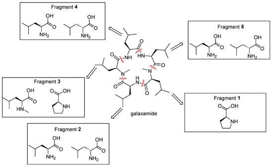 - Xu, W.J.; Liao, X.J.; Xu, S.H.; Diao, J.Z.; Du, B.; Zhou, X.L.; Pan, S.S. Isolation, structure determination, and synthesis of galaxamide, a rare cytotoxic cyclic pentapeptide from a marine algae Galaxaura filamentosa. Org. Lett. 2008, 10, 4569–4572. [Google Scholar] [CrossRef] [PubMed]