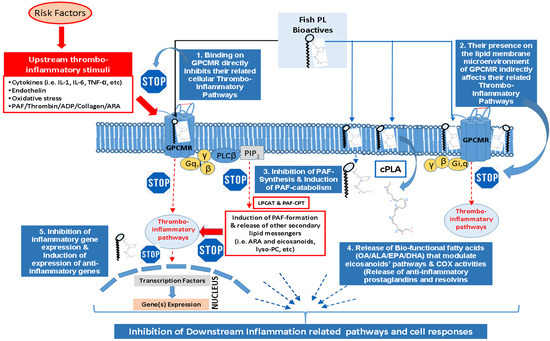 - Nasopoulou, C.; Tsoupras, A.B.; Karantonis, H.C.; Demopoulos, C.A.; Zabetakis, I. Fish polar lipids retard atherosclerosis in rabbits by down-regulating PAF biosynthesis and up-regulating paf catabolism. Lipids Health Dis. 2011, 10, 213. [Google Scholar] [CrossRef] [PubMed]