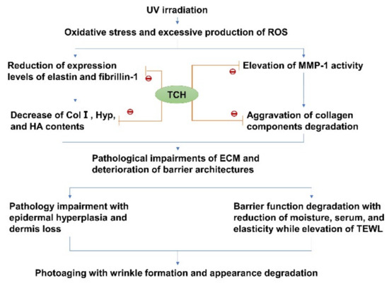 Potential cascading mechanism of TCH against photoaging.