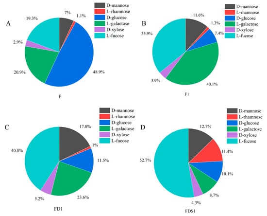 Monosaccharide composition: (A) F, (B) F1, (C) FD1, (D) FDS1.