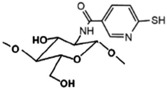 Representative structure of sulfhydryl-linked chitosan-mercaptonicotinic acid.