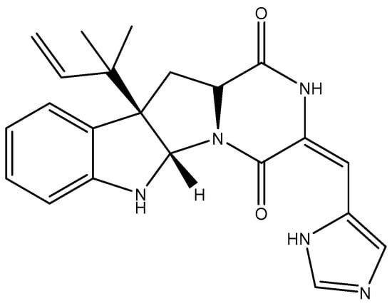 - Finefield, J.M.; Frisvad, J.C.; Sherman, D.H.; Williams, R.M. Fungal origins of the bicyclo [2.2.2]diazaoctane ring system of prenylated indole alkaloids. J. Nat. Prod. 2012, 75, 812–833. [Google Scholar] [CrossRef]
